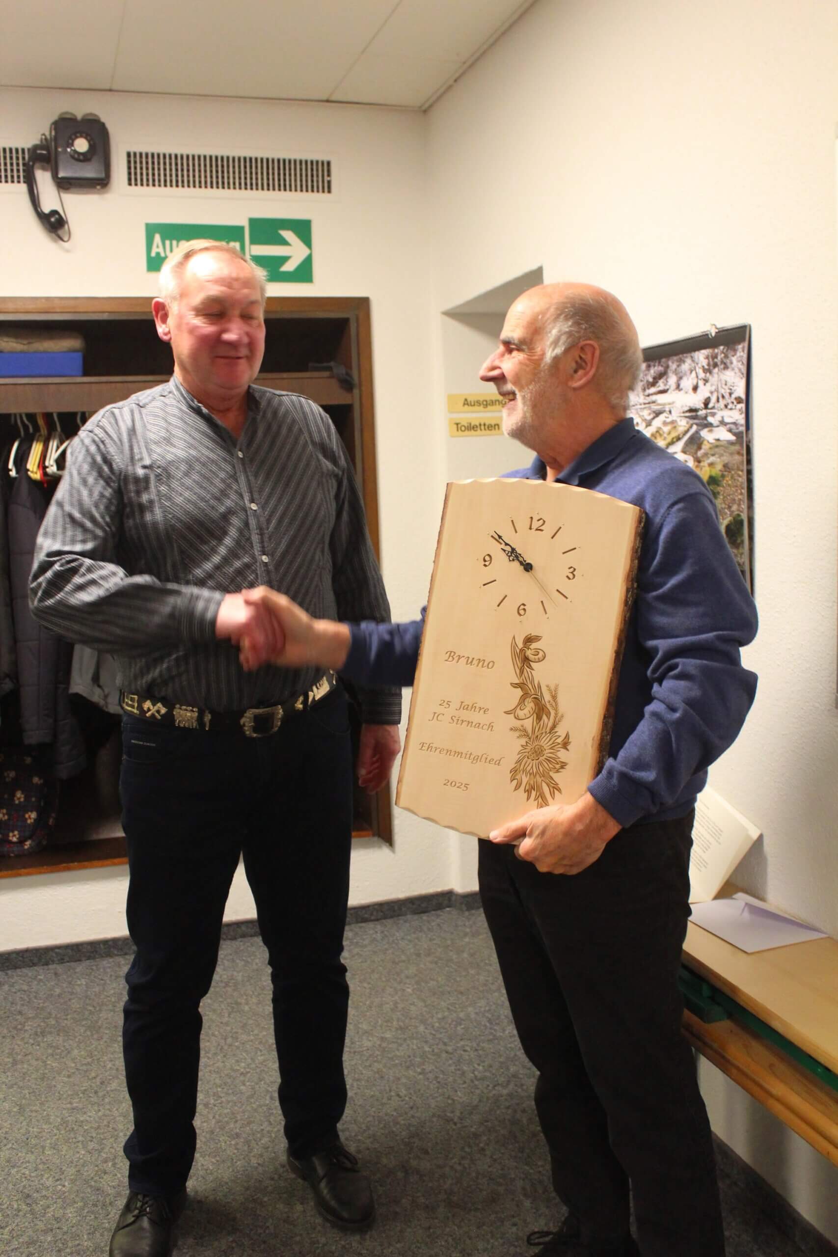 Aktivmitglied Bruno Hollenstein wurde für 25 Jahre und Roman Knupp für 10 Jahre Mitgliedschaft mit einem Präsent geehrt. Mit Ivo Bernhardsgrütter konnte ein neues Mitglied in die Reihen der Jodler aufgenommen werden.