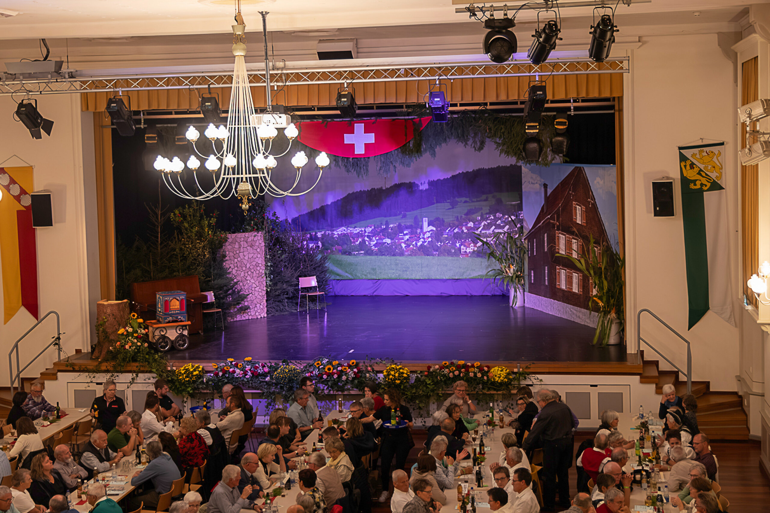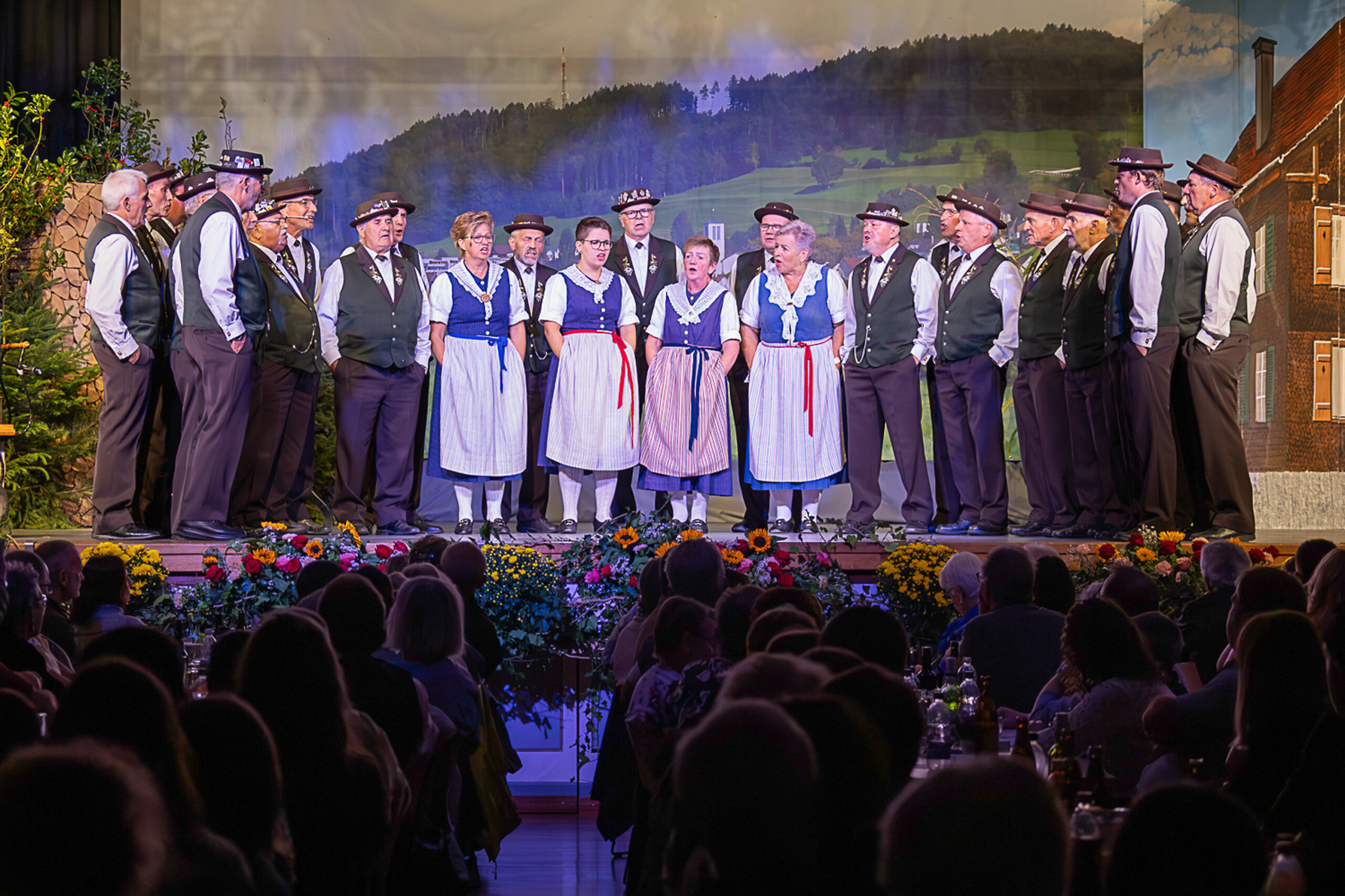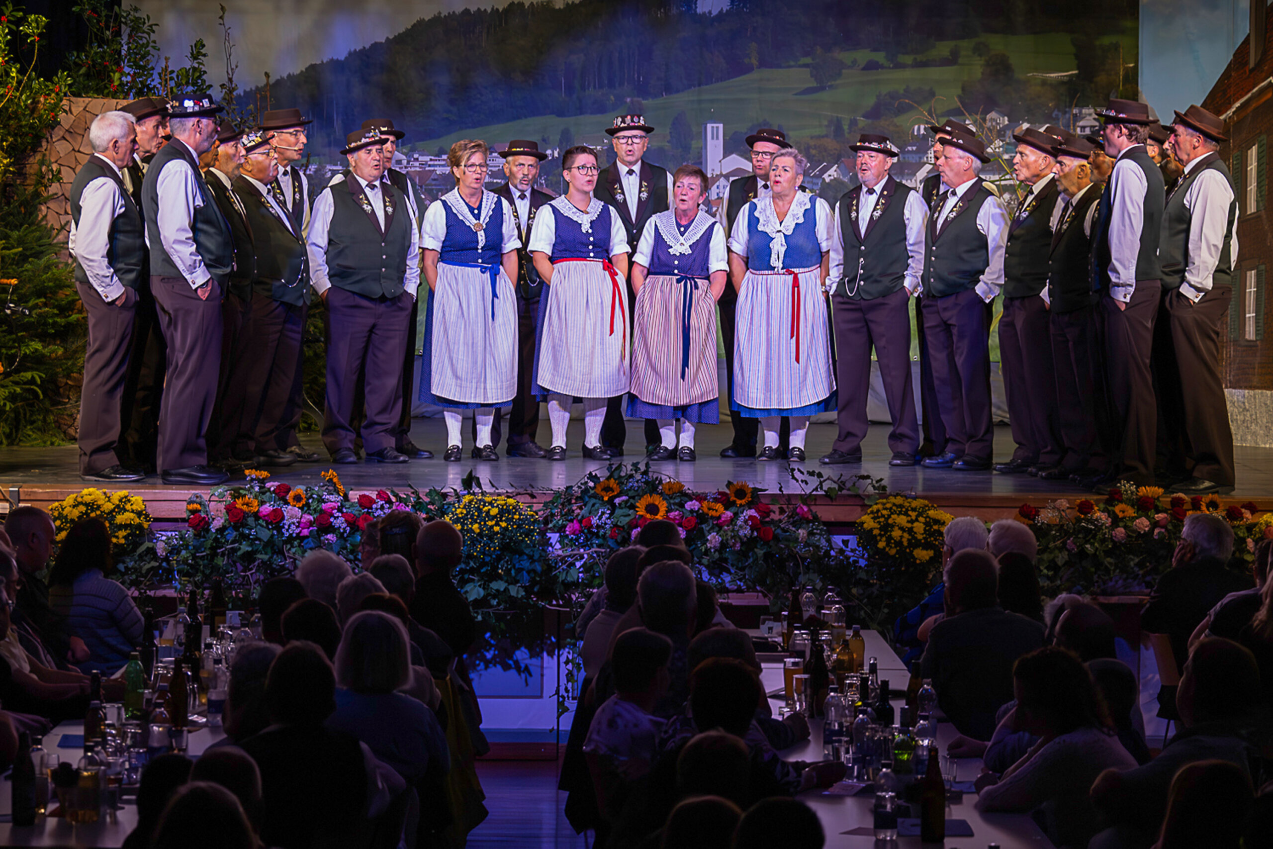 Dieses Jahr war wieder eine «Stubete» angesagt. Im Unterschied zur Unterhaltung gibt dieses Format auch anwesenden Jodlerinnen, Jodler und Musikanten Gelegenheit, sich auf der Bühne zu präsentieren. Im ersten Teil gestalteten die Gastgeber das Programm mit eigenen Vorträgen, dieses Jahr ergänzt durch am Freitag-Abend durch die Thurgauer Jodelspatzen und am Samstag-Abend durch das Kinderjodelchörli Mosnang. Im zweiten Teil kamen dann die spontanen Gäste auf die Bühne. Bei der Stubete weiss man nie genau, wer und was anwesend ist und dann mitmacht, es kamen aber einige Produktionen zusammen und boten dem Publikum einen bunten Strauss an Liedern und musikalischen Beiträgen.